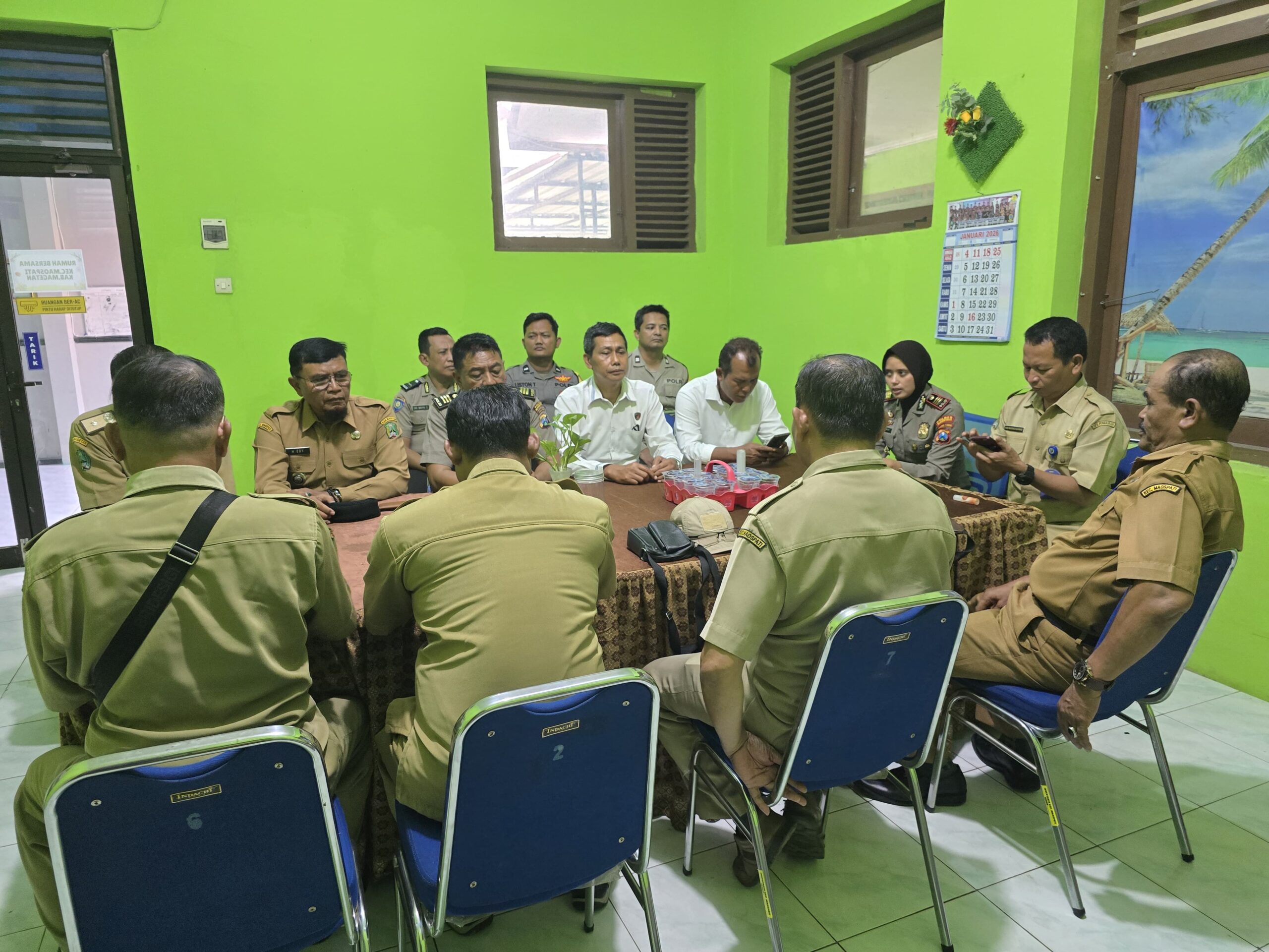 Magetan,ramahpublik.com- Guna mengantisipasi potensi bencana tanah longsor akibat aktivitas galian tanah tradisional, Polsek Maospati bersama Forkopimca Kecamatan Maospati menggelar Rapat Koordinasi (Rakor) pada Senin, 26 Januari 2026 bertempat di Ruang Pertemuan Kantor Kecamatan Maospati.