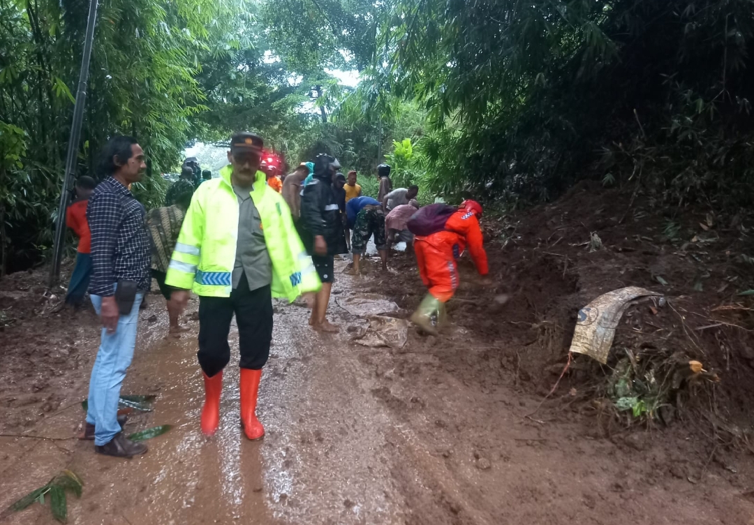 Kapolsek Ngrambe AKP Agus Hari bersama personel Polsek Ngrambe yang menerima laporan dari warga segera mendatangi lokasi kejadian. Penanganan dilakukan secara cepat dan terpadu dengan melibatkan stakeholder terkait diantaranya Koramil Ngrambe, Damkar Kabupaten Ngawi, Perangkat Desa, Relawan SAR Elpeje, serta warga sekitar untuk melakukan evakuasi material longsor dan pengamanan lokasi.