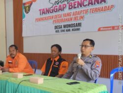 Ngawi , ramahpublik. Com— Polsek Sine Polres Ngawi Polda Jatim, menggelar kegiatan sosialisasi Tanggap Bencana di Aula Kantor Desa Wonosari, Kecamatan Sine. Kegiatan ini dipimpin langsung oleh PLH Kapolsek Sine, AKP Sugeng Wahyudi, S.Sos., dengan melibatkan perangkat desa, relawan, serta unsur TNI–Polri.