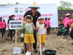 Magetan, ramahpublik.com— Kepedulian terhadap kelestarian lingkungan terus ditunjukkan oleh jajaran Polres Magetan bersama Bhayangkari. Pada Rabu, 22 April 2026, bertempat di lahan aset milik Polres Magetan di Kelurahan Selosari, Kecamatan Magetan, Kabupaten Magetan, digelar kegiatan penanaman pohon dalam rangka memperingati HUT Yayasan Kemala Bhayangkari ke-46 dengan tema *“Yayasan Kemala Bhayangkari Peduli.”*