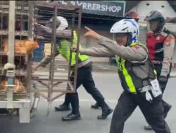 “Tadi kami menerima laporan ada kendaraan mogok di badan jalan, lalu kami bantu untuk penanganan agar tidak menimbulkan kemacetan,” ujar Iptu Putut usai bantu dorong mobil mogok.
